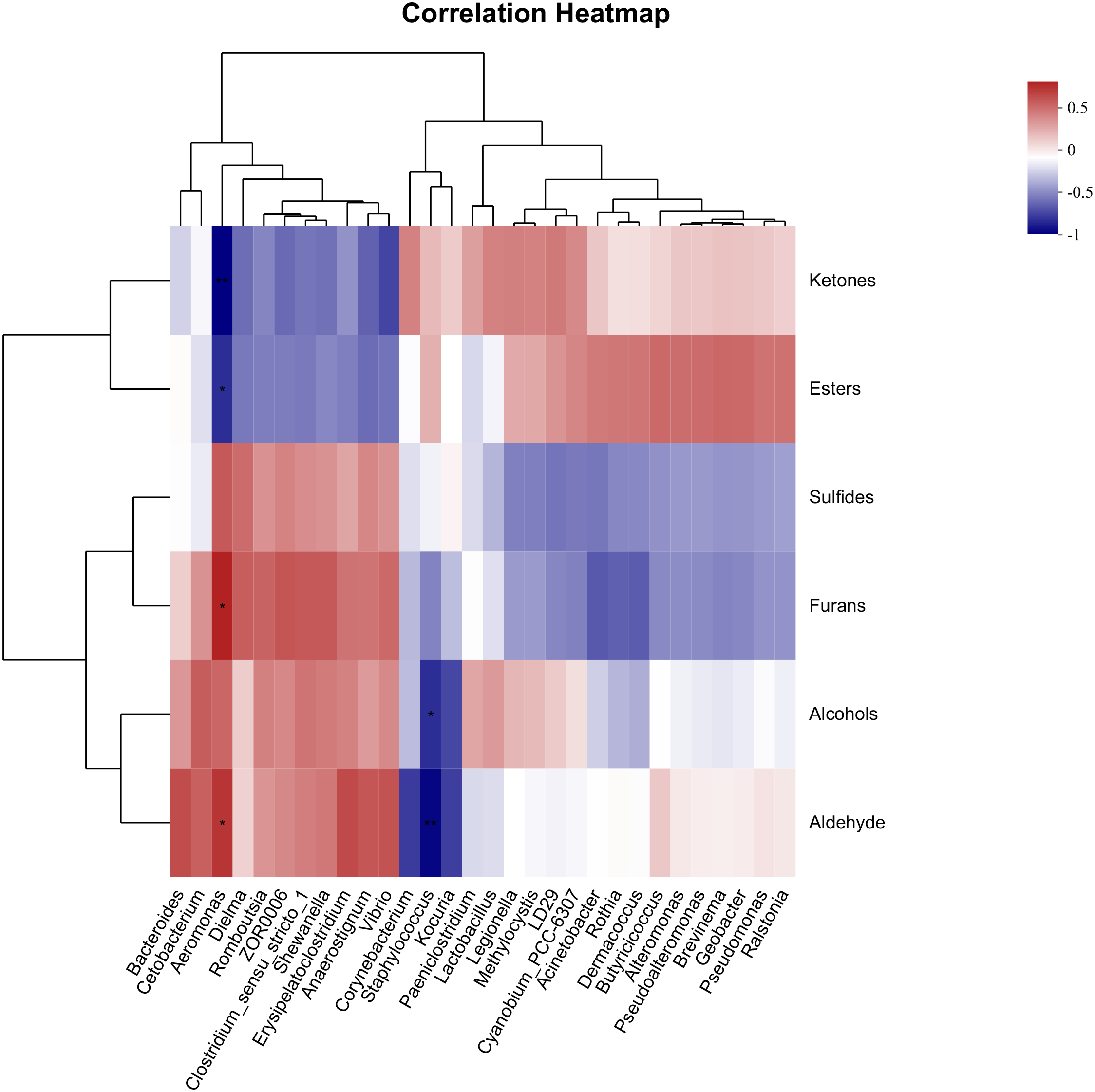 Statistical analyses were performed using the Statistical Package for the Social Sciences (SPSS) 23 software (IBM, Armonk, USA). Data were presented as mean ± standard deviation (SD), the analysis was conducted using one-way ANOVA, with a significance threshold level set at P< 0.05. Laboratory Analytical Viewer (LAV, G.A.S., Dortmund, Germany) software and GC-IMS Library Search were used to analyzed the aroma profiles “Fingerprint” gallery plots and principal component analysis (PCA) of muscle samples are analyzed using laboratory analytical viewer (LAV, G.A.S., Dortmund, Germany) software and GC-IMS Library Search. In R software, Spearman correlation is used to calculate the correlation between the top 30 bacterial genera in gut microbiota abundance and VOCs with statistical differences.