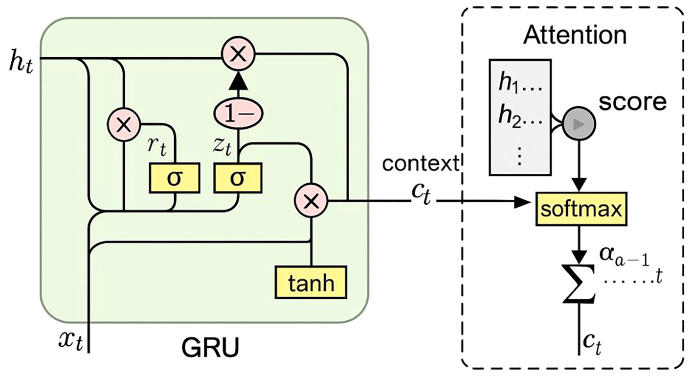 Schematic diagram of the GRU with Attention model for each layer.