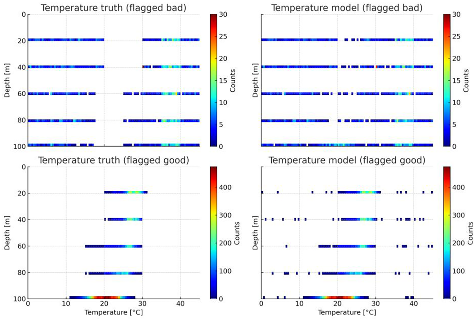 Further developments include the integration of multi-source observational data with neural networks for real-time meteorological anomaly detection (Xu et al., 2021); the application of multilayer perceptrons (MLPs) and deep neural networks (DNNs) to sea temperature classification tasks, enhanced by synthetic minority oversampling and weighted loss functions (Liu et al., 2021); the use of the SalaciaML model for efficient temperature anomaly detection on large Mediterranean datasets (Mieruch et al., 2021); the design of BP network–based automated QC workflows to improve observation consistency (Huang et al., 2023); the construction of particle swarm–optimized BP neural networks for anomaly detection under high-humidity conditions (Wang et al., 2024); and algorithm evaluation for pH data quality control, where the addition of near-surface reference points was proposed to improve QC accuracy (Wimart-Rousseau et al., 2024).