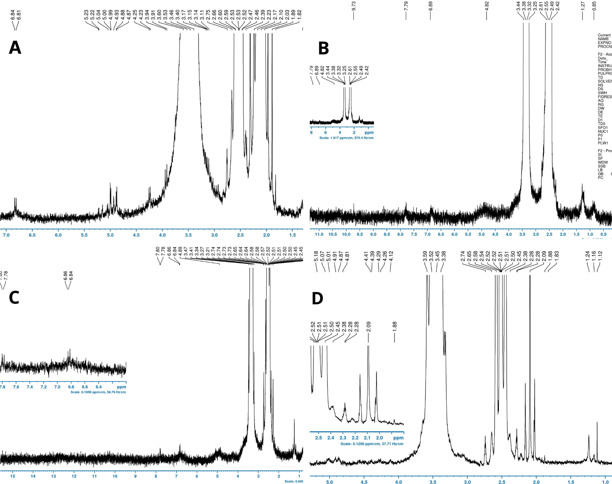Using proton nuclear magnetic resonance spectroscopy (1H-NMR) characterization, MP particles were dissolved in a suitable deuterated solvent. Deuterated dimethyl sulfoxide (DMSO-d6) (99.8 atom %D) and deuterated chloroform (CDCl3) (99.8 atom %D, stab. with Ag) from Deutero, Germany, were used.