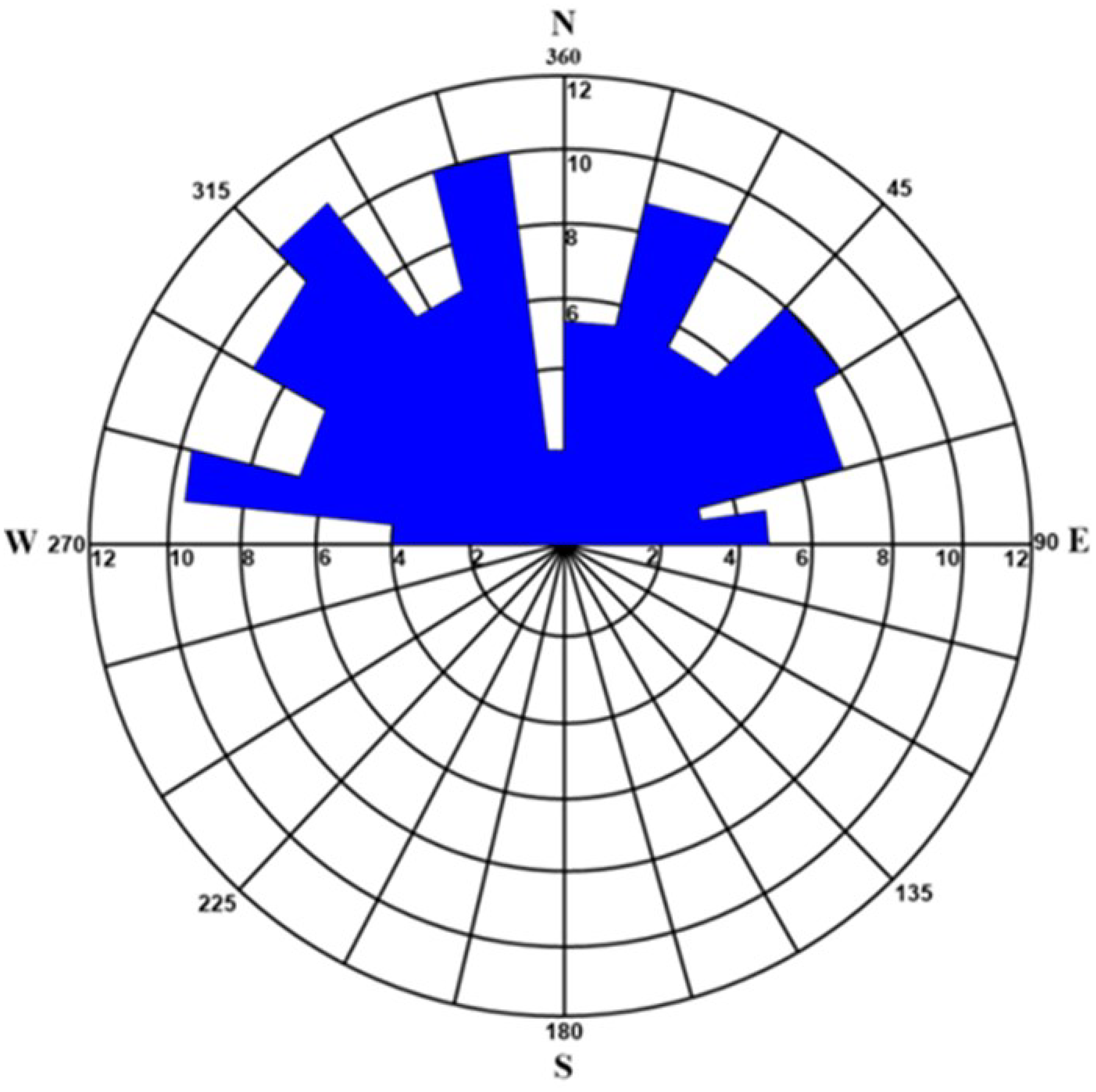 The extracted lineaments exhibit lengths ranging from 0.82km to 37.16km, with a mean length of 7.20km and a standard deviation of 7.10km (FigureĀ 7c, TableĀ 1). A rose diagram (FigureĀ 8) was created to analyze the primary orientation of these lineaments, revealing a dominant northwest trend, with additional trends oriented northeast. These structural patterns are primarily attributed to faulting and fracturing within the geological formations of the Wadi Araba region (Emekwi etĀ al., 2024).