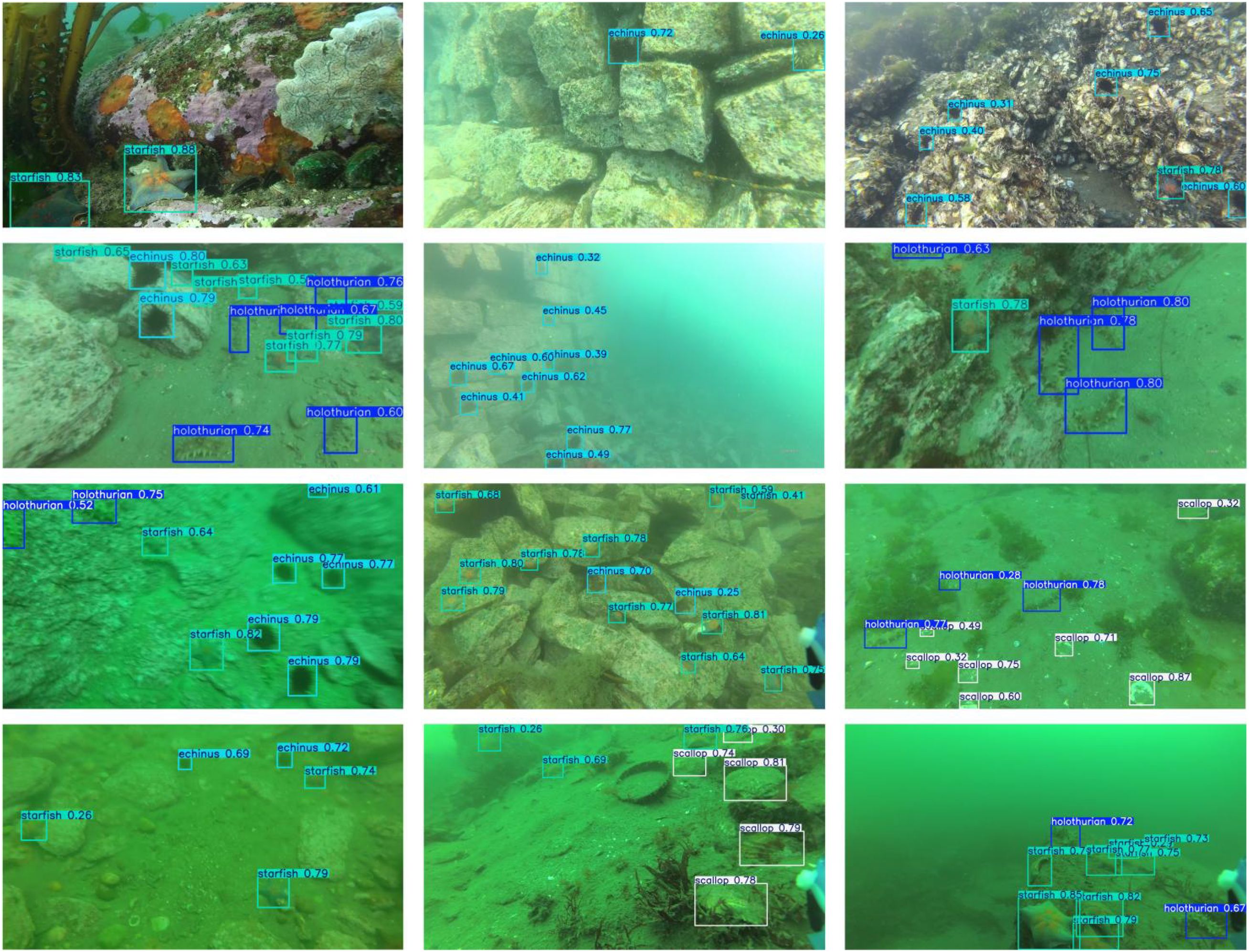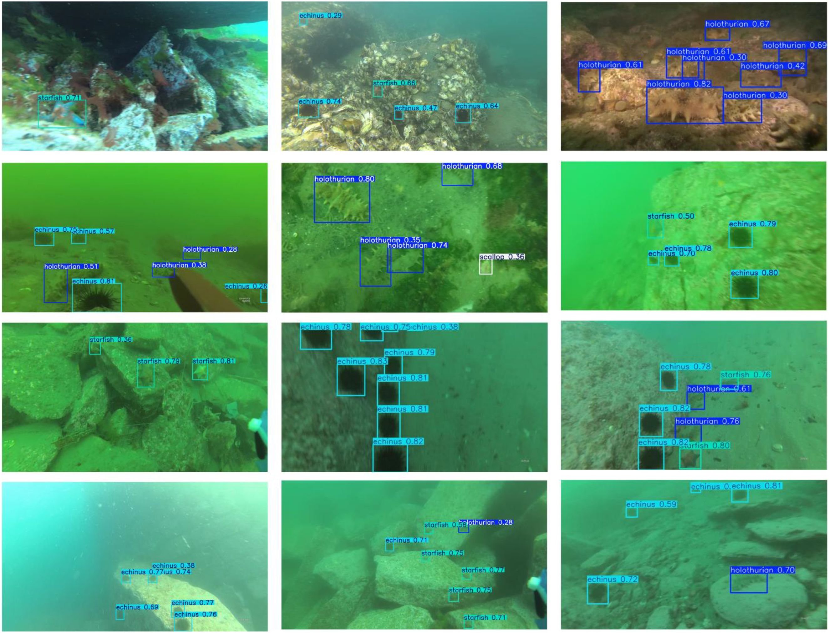 In this paper, the publicly available underwater scene biological image dataset, the underwater robot programming contest 2021 (URPC2021), and detecting underwater objects (DUO) are utilized to test the performance of the proposed method in underwater biological detection. The two datasets involve consistent categories, namely holothurian, echinus, scallop, and starfish. Both datasets contain complex underwater scenes containing low light, low contrast, target occlusion, size inconsistency, etc., which can comprehensively evaluate the practicality of the optimized YOLO11 model for biological detection in complex underwater scenes.