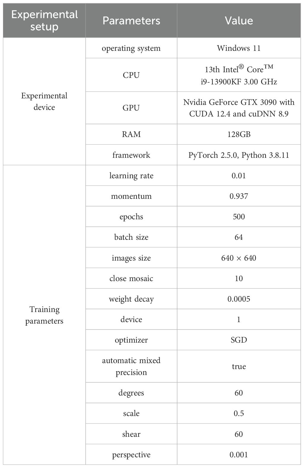 All the ablation experiments and comparison tests in this paper were conducted under a device equipped with a deep learning framework. The model training parameters and device’s detailed configuration are shown in Table 1.