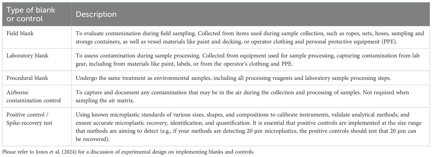 Table 6. A description of the type of blanks and controls that are recommended throughout microplastic sampling and quantification.