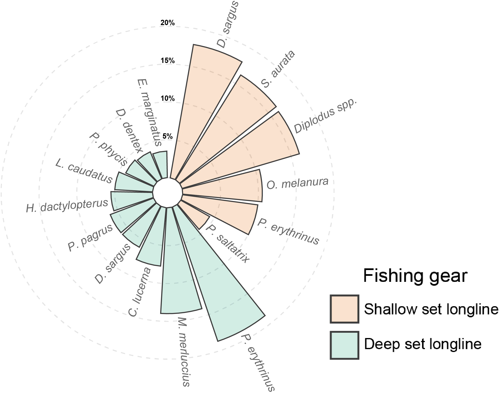 | Target species | Diplodus spp., Sparus aurata, Pagellus spp. | Merluccius merluccius, Chelidonichthys lucerna, Pagellus spp., Diplodus spp. |