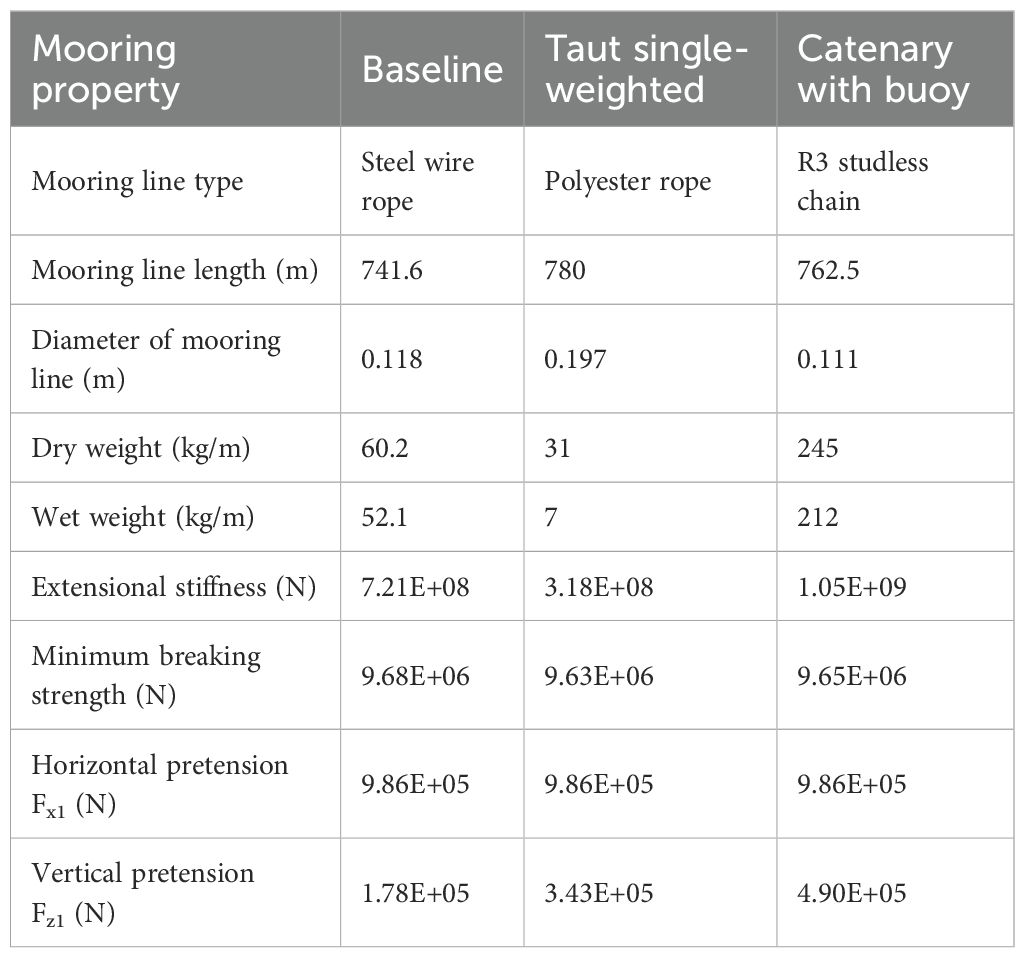 Table 8. Properties of the selected polyester rope length and corresponding clump weight in the sensitivity study.