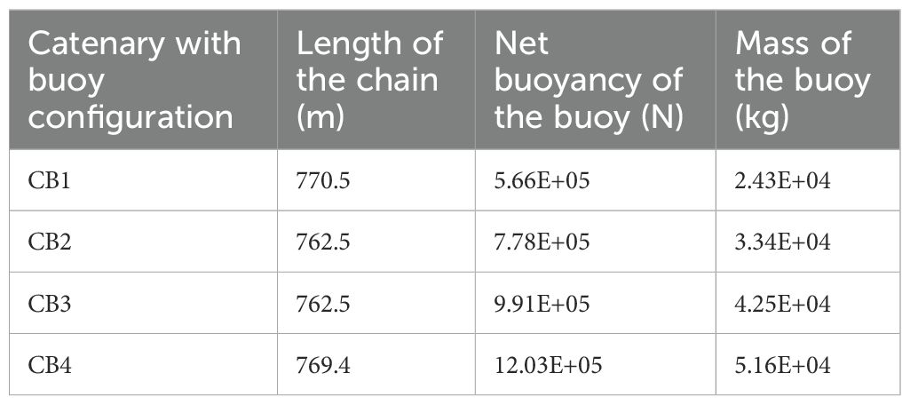 Table 9. Properties of the selected chain length and corresponding buoy in the sensitivity study.