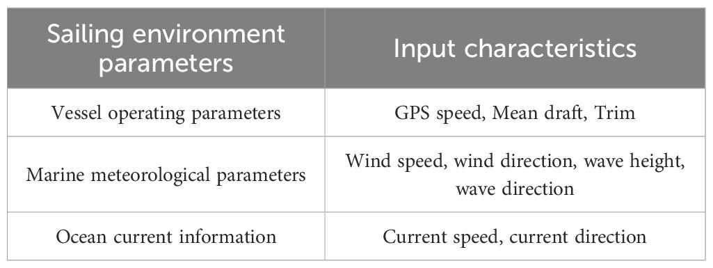 The output characteristic is daily main engine fuel consumption (ME consumed). The above features cover two categories: ship operating parameters and environmental factors. This set of selected features aims to capture the most important factors affecting ship energy consumption. For the specific feature selection method, please refer to the reference (Hu et al., 2022).