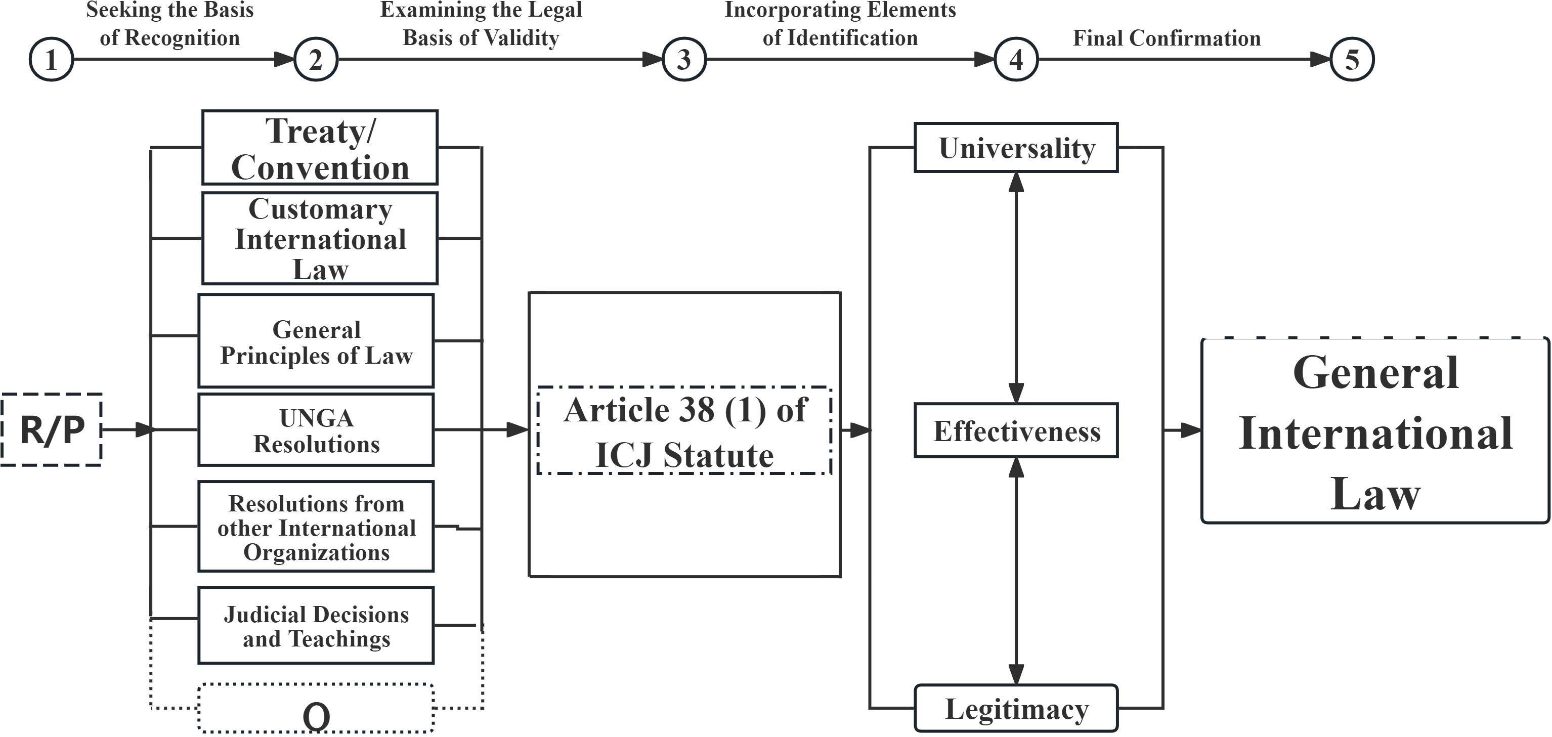 Drawing on the historical evolution of general international law, and taking into account its dynamic and general nature as well as its foundations in the recognized sources of international law, this paper contends that the identification of general international law is best understood as a “pluralistic and evolving” process. Accordingly, this paper presents a procedural framework for the identification of general international law (see Figure 1). This framework is intended to explore and gradually establish a coherent set of criteria for defining general international law.
