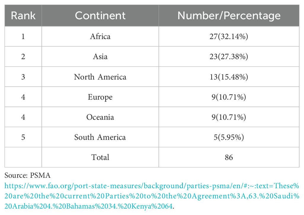 Currently, IUU fishing accounts for 15–30% of global marine catches annually (FAO, 2024), causing $10–23 billion in economic losses and leading to a 20% decline in key fishery stocks (e.g., tuna, cod) over the past decade (Khan and Jiang, 2024). This poses a severe threat to the sustainable development of fishery resources and marine ecosystems and the integrity of marine ecosystems. The core purpose of the PSMA is to prevent, deter, and eliminate IUU fishing by promoting effective port state measures among contracting parties, thereby cut down the chain of illegal fishing at the stages of port access and management, and ultimately achieving the long-term conservation and sustainable use of marine biological resources.