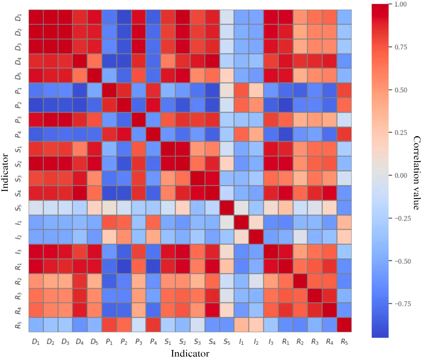 Correlation heatmap of the indicators.