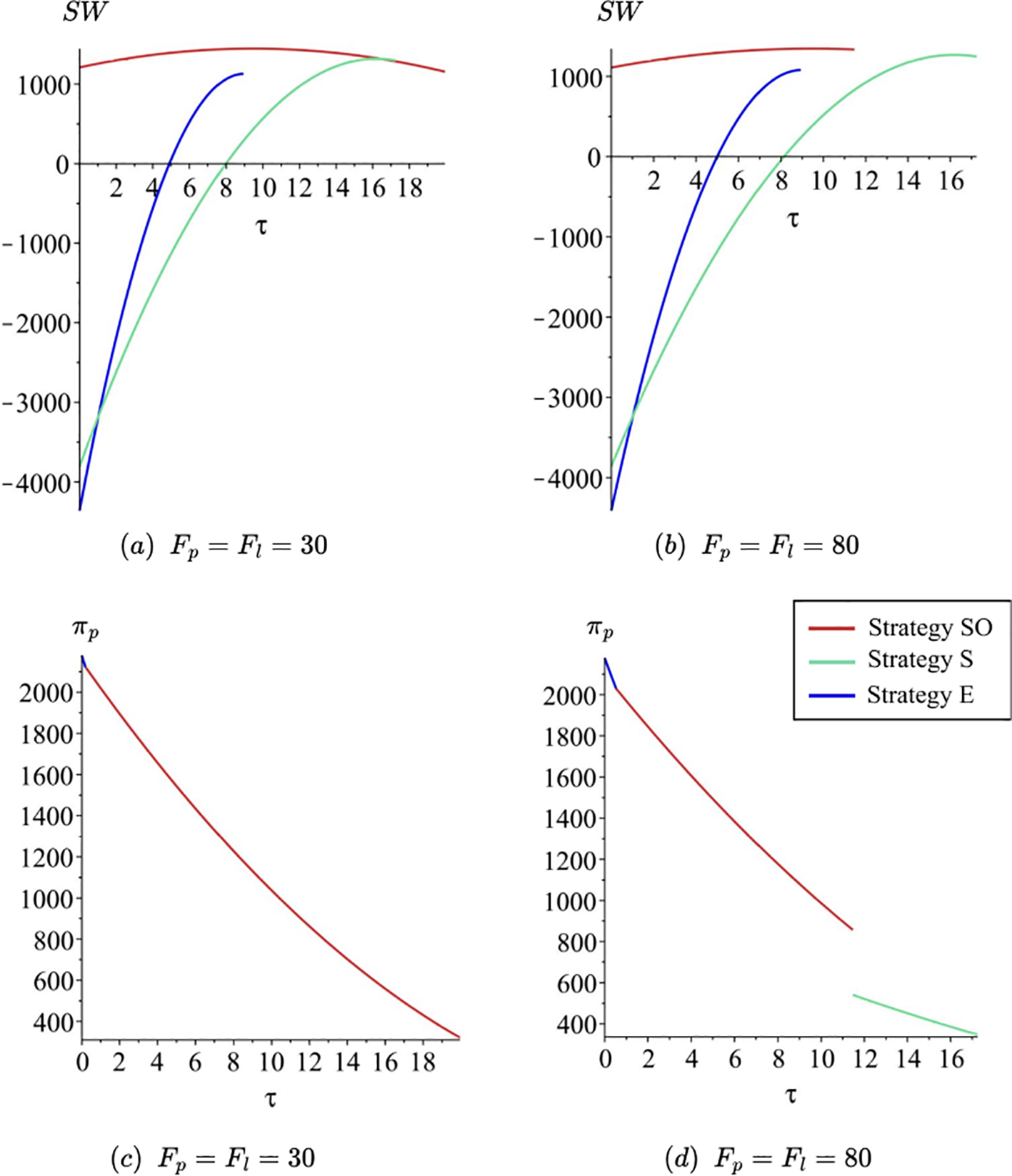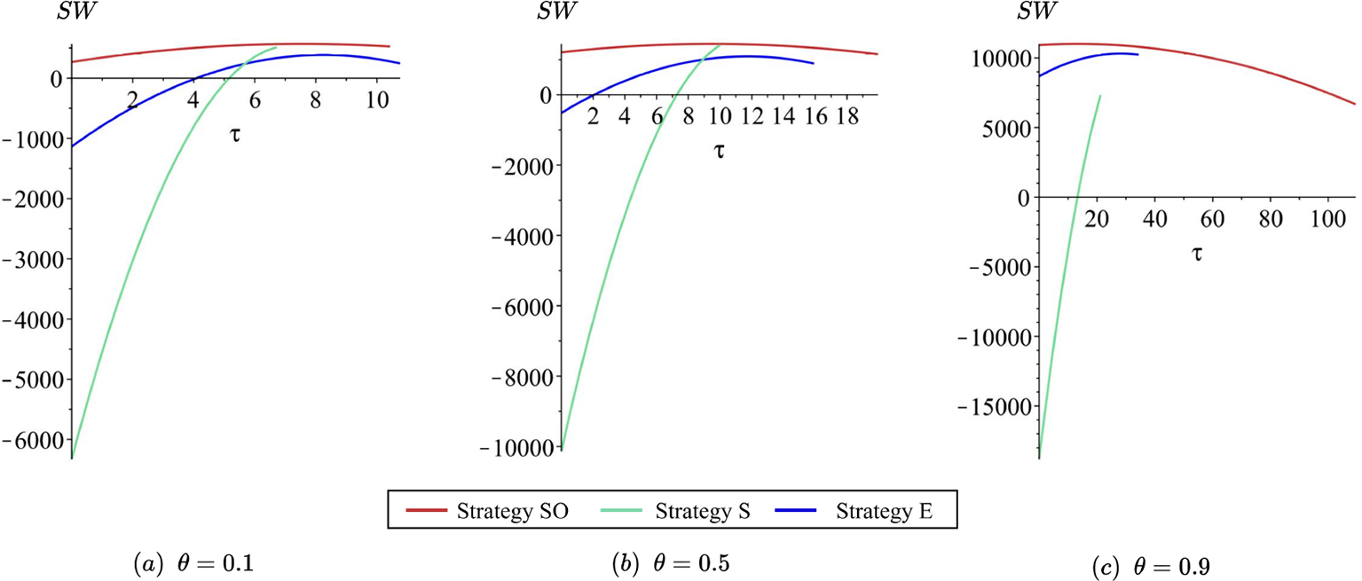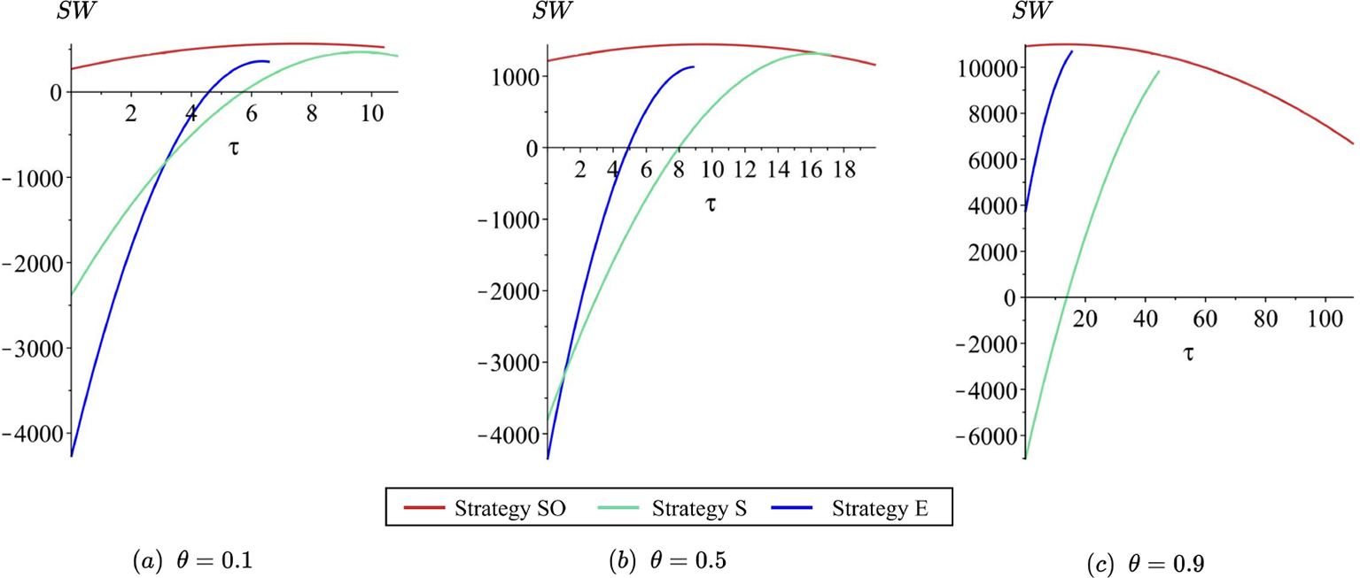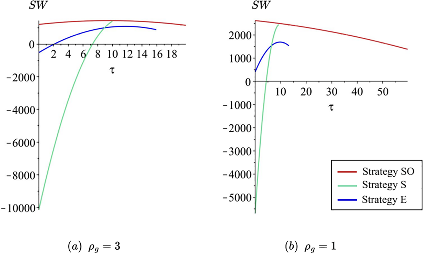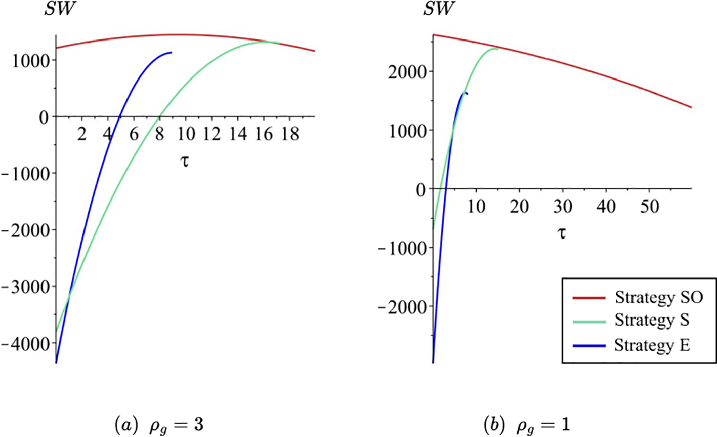 In this section, we will first present the equilibrium solutions under different strategies, followed by an analysis of the patentee’s optimal licensing strategy under varying initial carbon efficiencies of the two parties. Finally, from the perspective of the regulator, we will analyze how carbon tax policies can align the goals of different stakeholders.