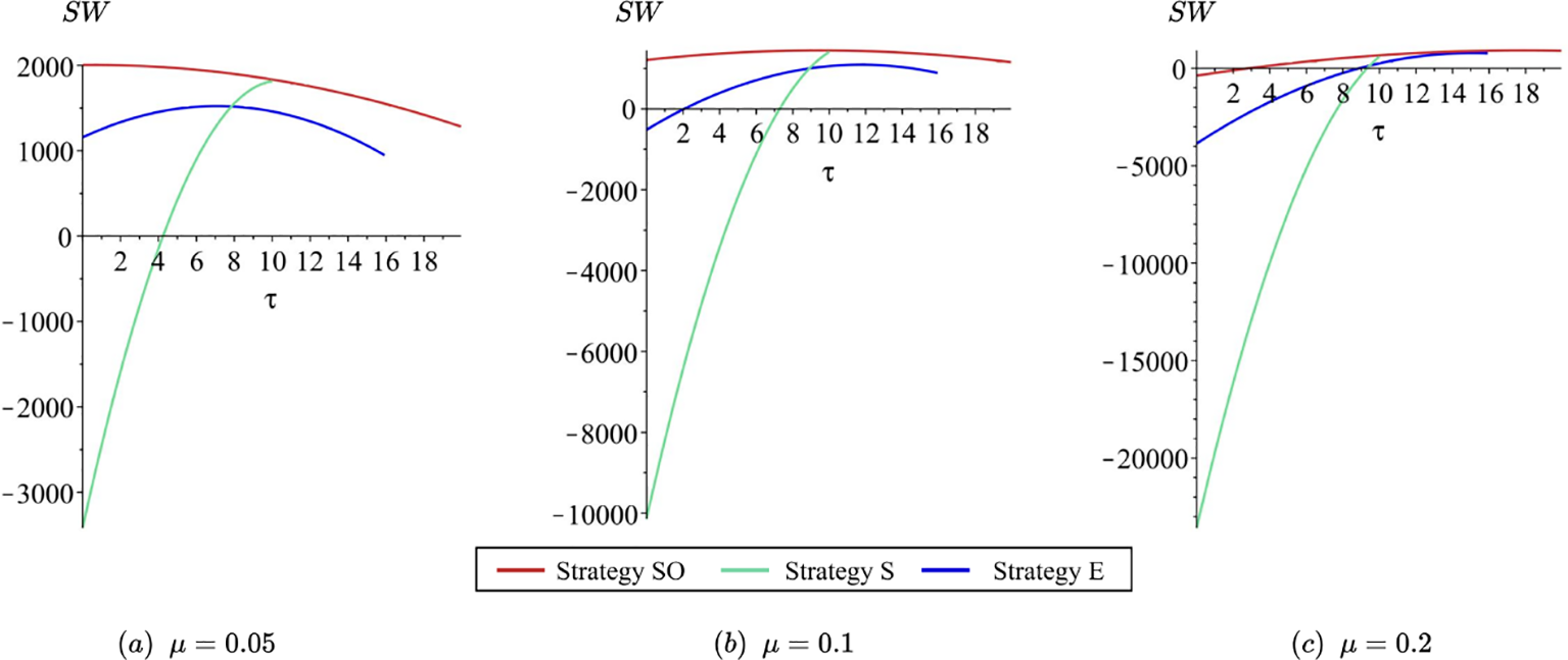 As shown in Table 2, regardless of the strategy adopted, an increase in carbon tax leads to higher prices, indicating that the tax burden is transferred to shippers. However, whether licensing occurs affects the sensitivity of prices to carbon tax fluctuations. Specifically, in the absence of licensing, the carbon tax imposed by the government is entirely passed to shippers, resulting in substantial price volatility in response to tax changes. Conversely, when licensing takes place, the carbon tax burden is not fully transferred; instead, part of it is absorbed and mitigated through licensing activities, enabling carriers to adopt a more stable pricing strategy in the face of carbon tax variations.