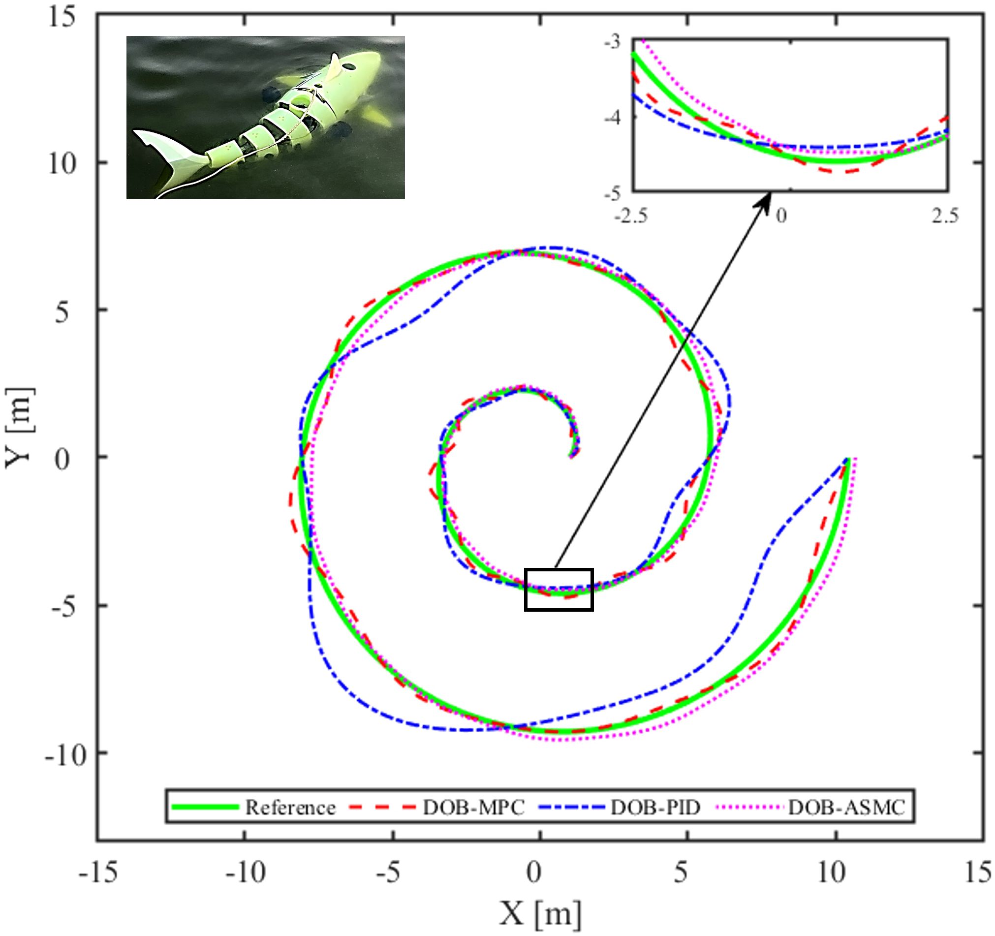 Keywords: inverse sliding mode control, nonlinear disturbance observer, trajectory tracking, tail-fin-driven robotic fish, adaptive robust control