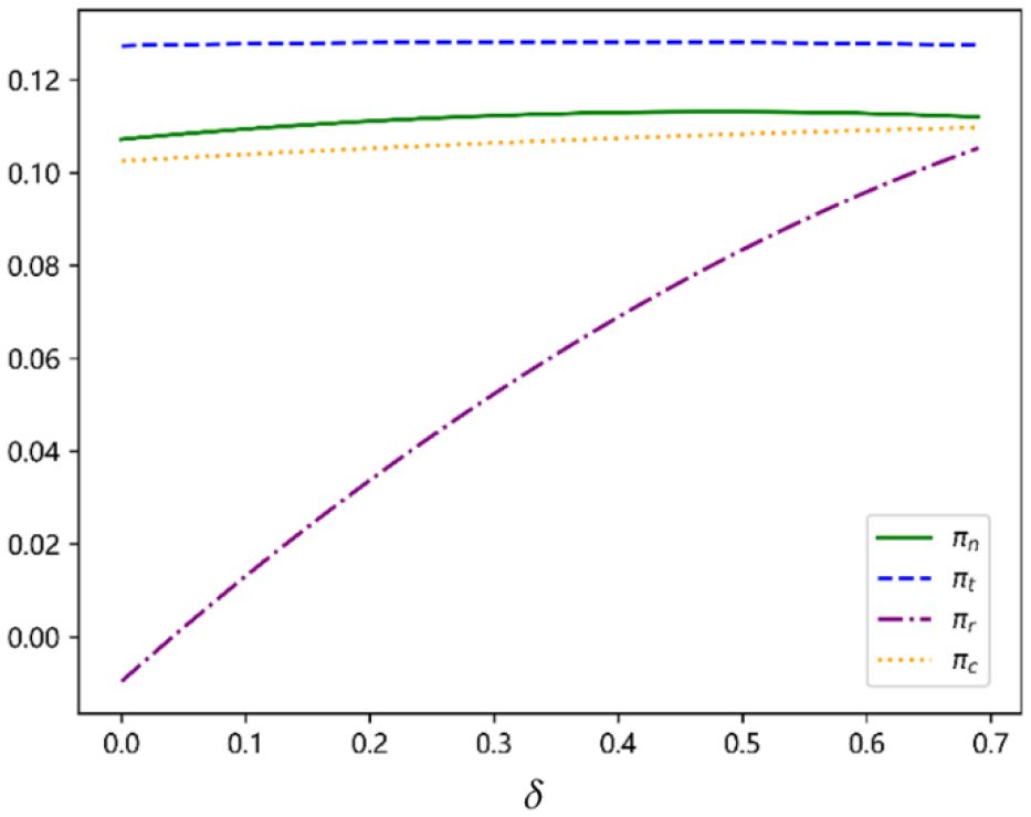 The stable existence of the alliance requires that the total revenue of the alliance exceeds the sum of the revenues of each logistics company when competing individually in the market (i.e., scenario ), and that the revenue of each logistics company is higher than when it competes alone in the market.