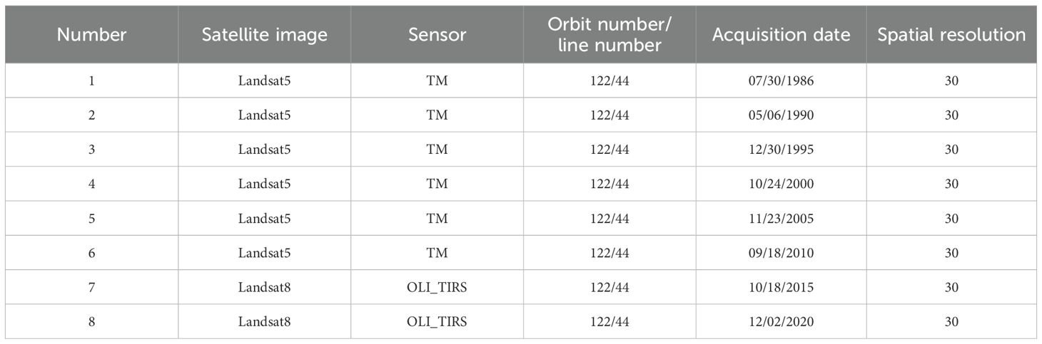 This study utilized multi-temporal Landsat satellite imagery (Landsat 5 TM and Landsat 8 OLI/TIRS) spanning 1986–2020 for shoreline detection and change rate estimation in Shenzhen Bay (Table 1). The image selection criteria prioritized cloud-free scenes (<10% cloud cover) acquired during low-tide periods to ensure optimal shoreline visibility. The land use date of coastal zone (1986–2020) is provided by Data Center for Resources and Environmental Sciences, Chinese Academy of Sciences (Xu et al., 2018). Annual tidal records from the Tsim Bei Tsui monitoring station, provided by the Hong Kong Observatory (https://www.hko.gov.hk/sc/cis/yearlyTide.htm?stn=TBT). The sediment accumulation date of Shenzhen Bay is obtained from Kang et al. (2024). All spatial datasets were georeferenced to the WGS84 coordinate system and resampled to 30 m resolution to maintain consistency across the temporal series. The land use data were reclassified into six categories (farmland, forest, grassland, water, construction land, and ocean) to facilitate correlation analysis with shoreline changes.