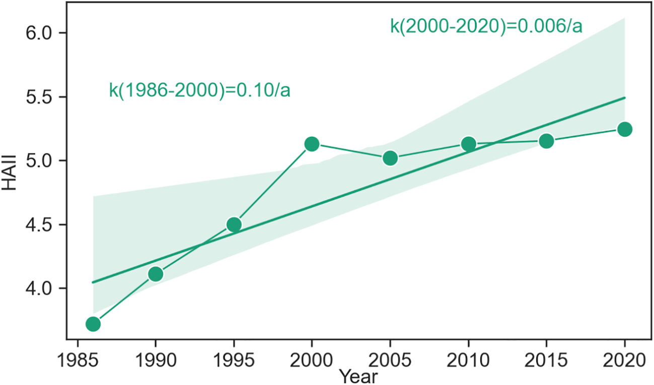 Xu Y. Sun X. Tang Q. (2015). Human activity intensity of land surface: concept, method and application in China. Acta Geographica Sin.70, 1068–1079. doi: 10.11821/dlxb201507004