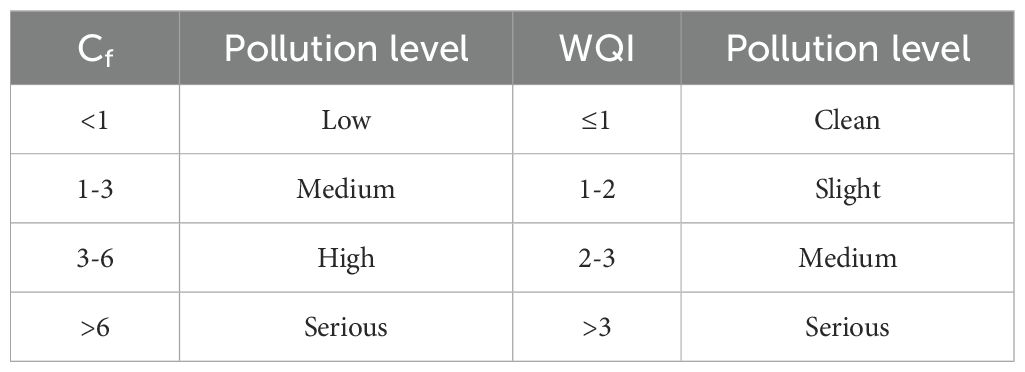 where Cs is the limit from China’s Seawater Quality Standard (GB 3097-1997). Interpretation followed established frameworks (Baltas et al., 2017; Macdonald et al., 1996; see Table 1).