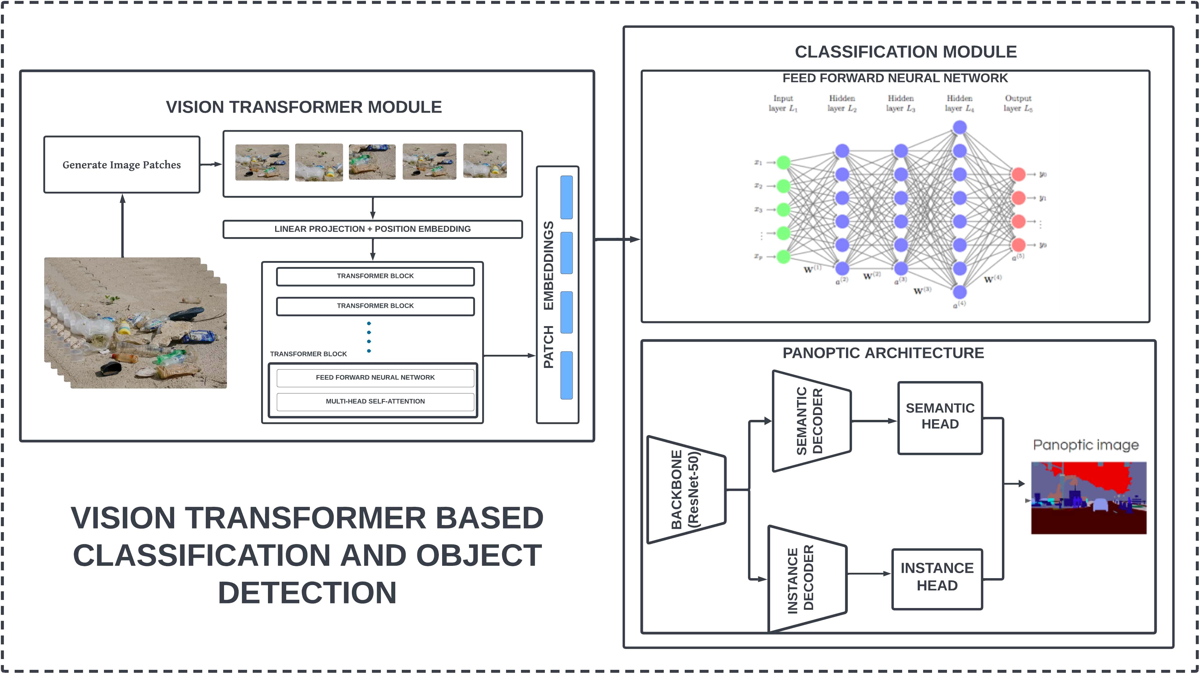 Figure 2. Proposed Architecture for Marine Litter Classification using a vision transformer and the panoptic segmentation.