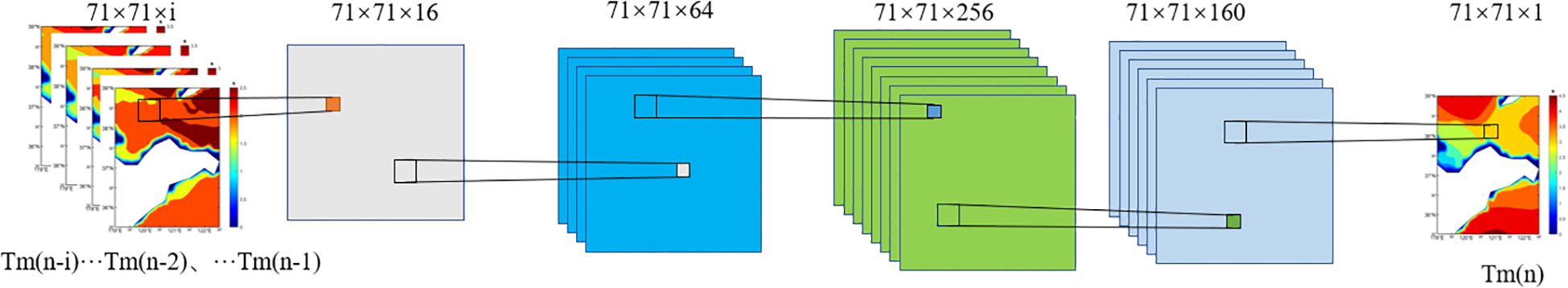 This study developed a CNN-based model to forecast Hs and Tm in the Yantai Fishing Zone. The model uses historical time steps of Hs and Tm as inputs to forecast the corresponding Hs and Tm at a specified lead time.