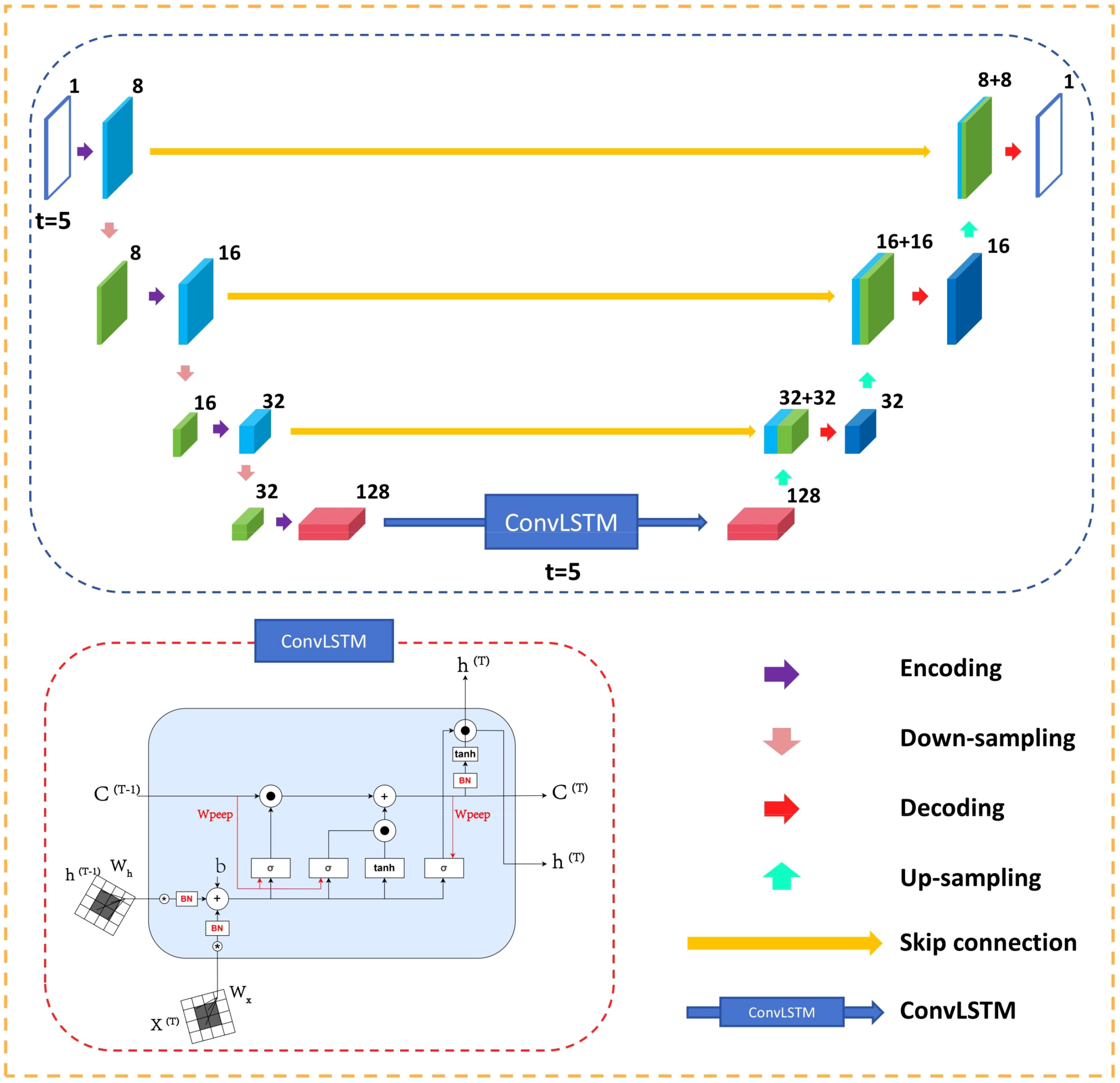 Structure of the UNet-ConvLSTM model.