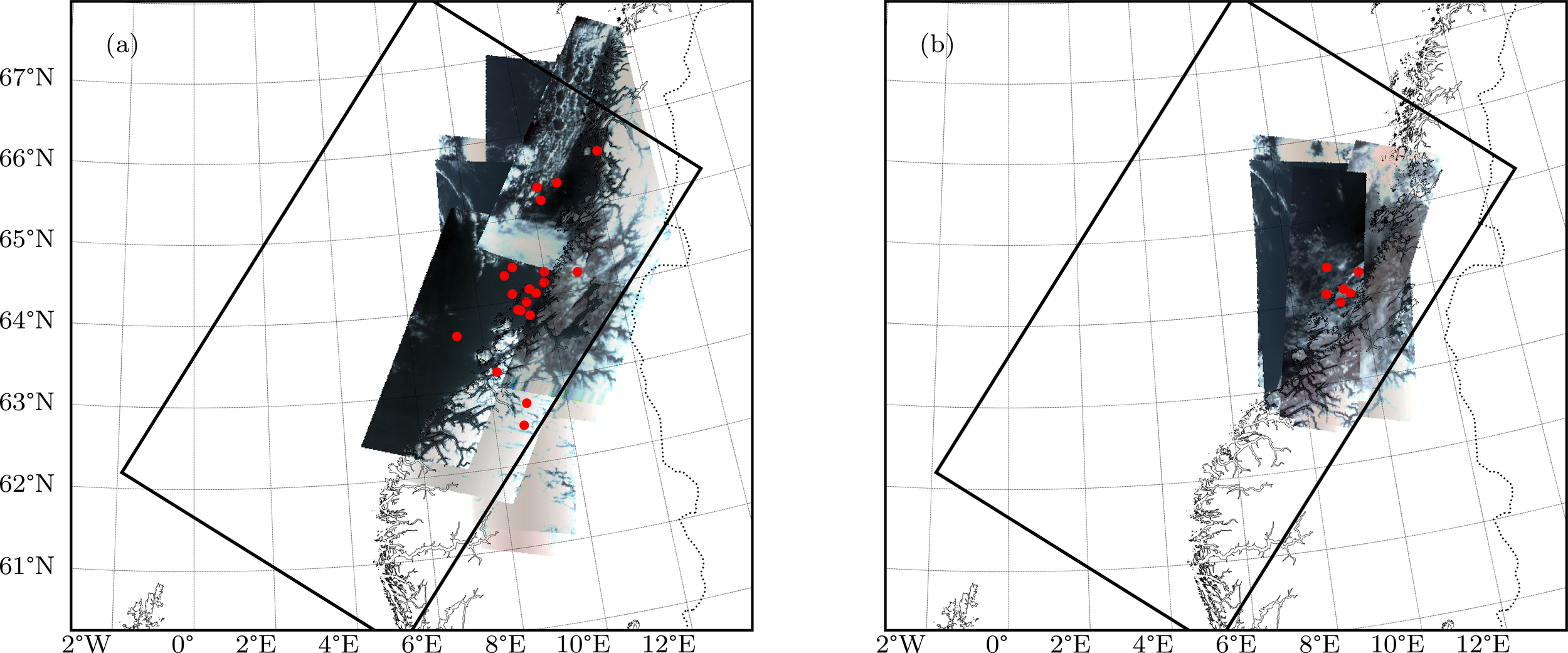 The two principal coastal model domains used in this study have a horizontal resolution of 800 m, named MIDNOR, and 160 m, named FROSHELF. Two regional model domains of 20 km, referred to as GIN and 4 km, referred to as NOR4KM, are run simultaneously as support simulations for the production of boundary conditions for the two coastal model domains. The same model domain names are used to refer to the freerun simulations conducted in this study. To differentiate between simulations with and without data assimilation, an “a” prefix, for assimilation, is added to the domain names: aGIN, aNOR4KM, aMIDNOR and aFROSHELF. The computational domains are visualized in Figure 1.