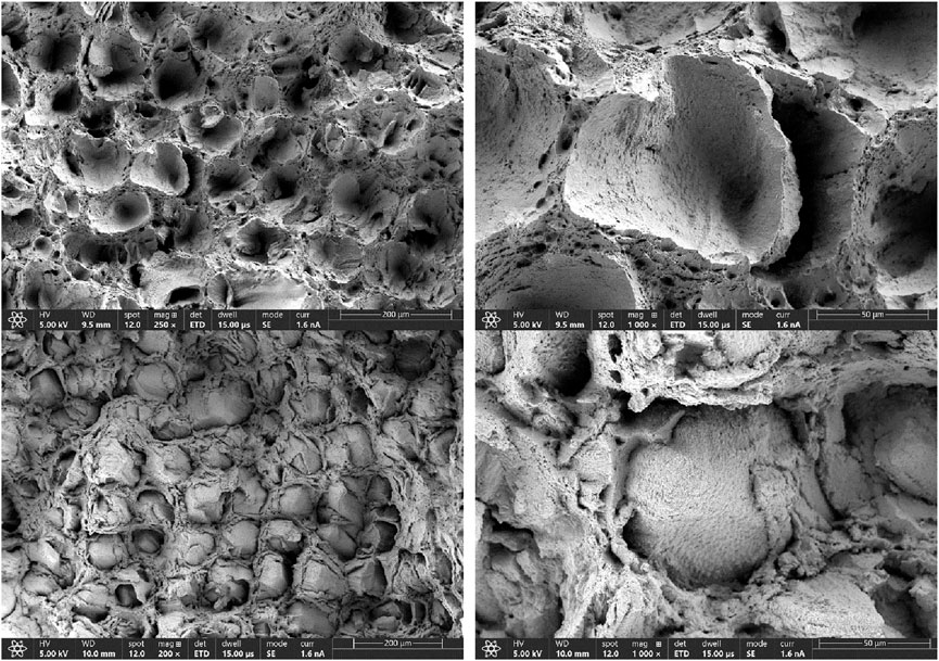 Figure 21. SEM picture of both UC fracture surfaces in XY orientation. CEA Aged, test piece GC-01,