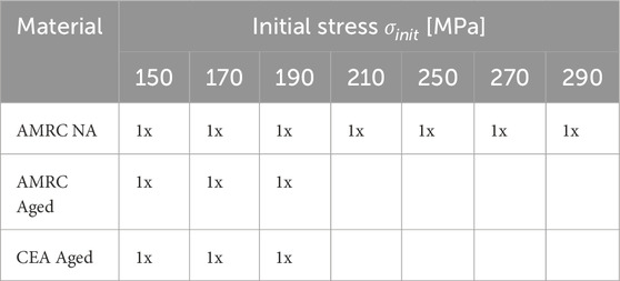 Four bars from the internal AMRC qualification process were used for three UC tests (at initial stress of 250 MPa, 270 MPa, and 290 MPa) due to an insufficient amount of originally shipped material. The heat treatment of these bars was performed at the JRC, following the same HT2 procedure.