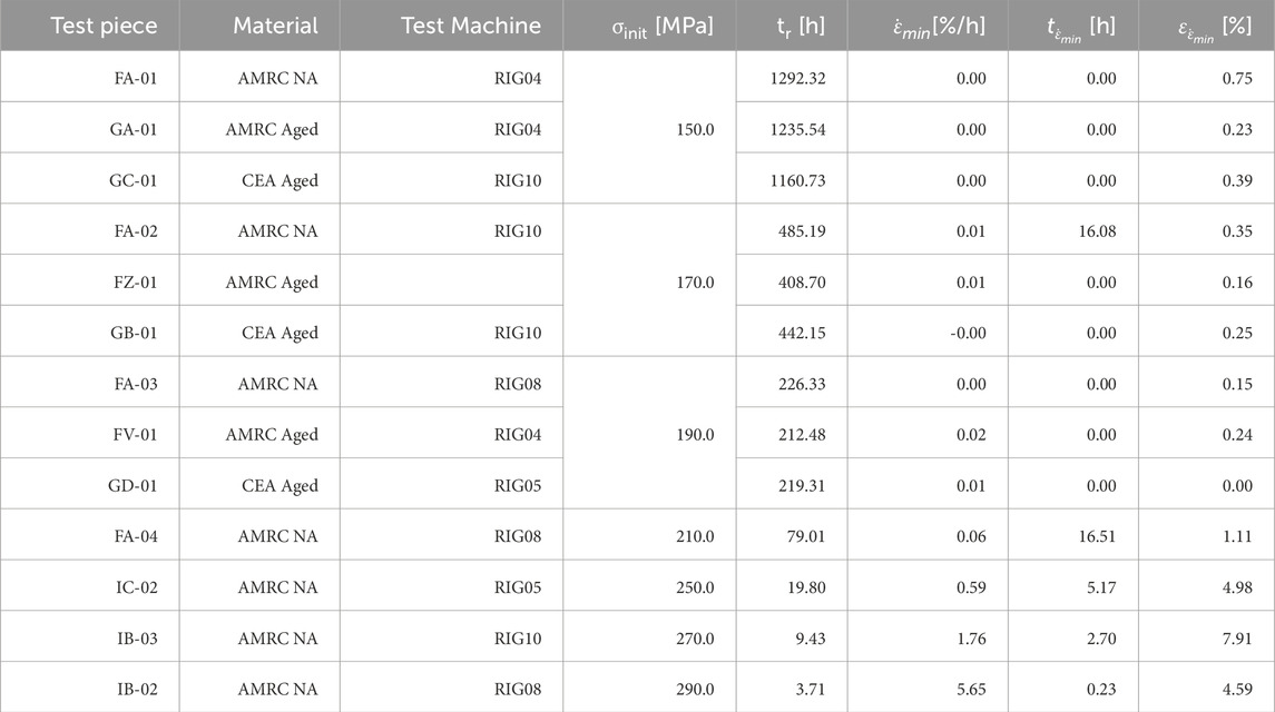In the second stage, reference uniaxial creep tests were performed at 650 °C. The equivalent stress