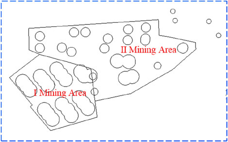 This chapter employs numerical simulations to inversely analyze and predict the impact of salt cavities on ground subsidence in the Longgui Nitrate-Salt Mine. The model boundaries are defined based on wellhead coordinates and the Sealing Well Construction Layout Plan of the Longgui Nitrate-Salt Mine, as shown in Figure 5.