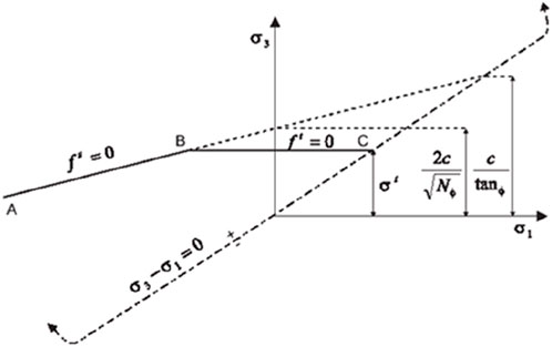 Assuming that the compressive stress is negative, the yield function of the Mohr-Coulomb strength condition is: