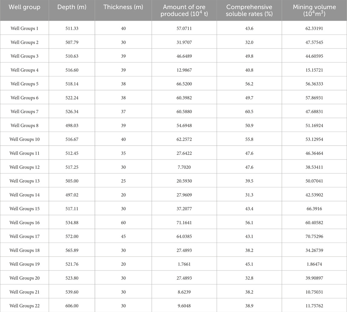 Based on the comprehensive soluble rate of rock salt near the well group and the extracted mineral mass, the dissolved mass of salt rock and glauberite is determined: