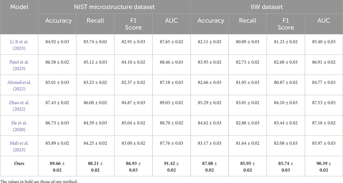 Table 2. Benchmarking our model against state-of-the-art approaches on NIST microstructure and IIW datasets.