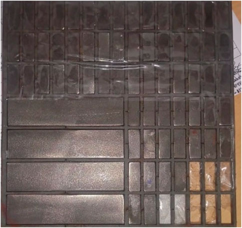 Figure 1. Ni–Cr coated EN 304 stainless steel specimens prepared for slurry erosion testing (25 mm × 10 mm × 6 mm).