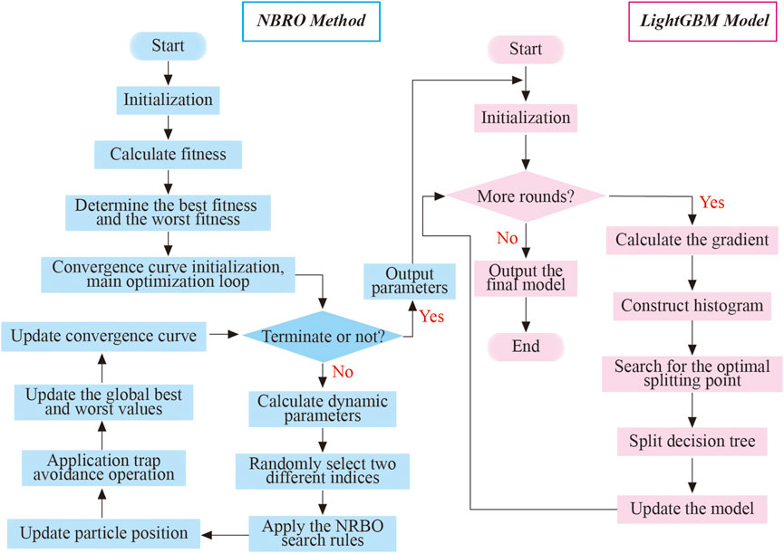 NRBO differs significantly from mainstream optimization algorithms such as particle swarm optimization (PSO), genetic algorithms (GA), and grid search (GS) in terms of optimization mechanisms and application performance. NRBO is based on the Newton–Raphson iterative method, which fully utilizes both the gradient and second-order information of the objective function (Yousef et al., 2025). In contrast, the PSO and GA are population-based intelligent optimization methods that rely primarily on collective cooperation and stochastic search, making them suitable for handling complex, nonlinear, or nondifferentiable problems. GS is an exhaustive search method that sets grid points within the parameter space and traverses all possible parameter combinations; although it is simple and easy to implement, it becomes computationally intensive and inefficient in high-dimensional spaces.