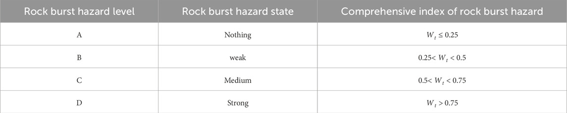 To refine the impact degree of geological factors and mining factors on the occurrence of rock burst, Formulas 2, 3 were introduced to calculate them respectively, and the final calculation results were taken as the judgment index for predicting the rock burst occurrence level.