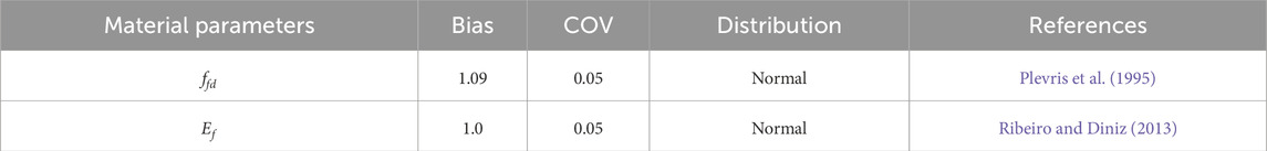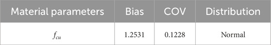 Uncertainty in material properties mainly refers to the differences in material performance caused by factors such as process, loading, and environment. The reliability analysis in this paper involves material properties including the compressive strength of SWSSC, the elastic modulus of FRP bars, and the tensile strength of FRP bars.