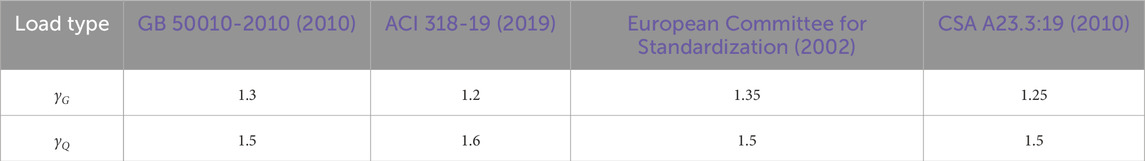 Due to the significant uncertainty associated with load effects, various design guidelines specify corresponding partial factors for dead load γG and live load γQ to ensure structural reliability, as shown in Table 7. The load effect can then be expressed as Equation 12,