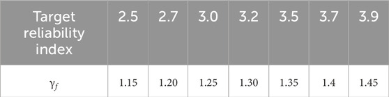 In such cases, the material partial factor can be calibrated using the reliability calculation results from the design space to obtain the optimal γf value. To assess the closeness of the partial factor γf to the target reliability index βT, the least squares method is employed. The formula is as follows,