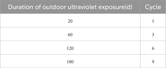 Table 2. Correspondence table between outdoor ultraviolet (UV) exposure time and simulated UV exposure time.