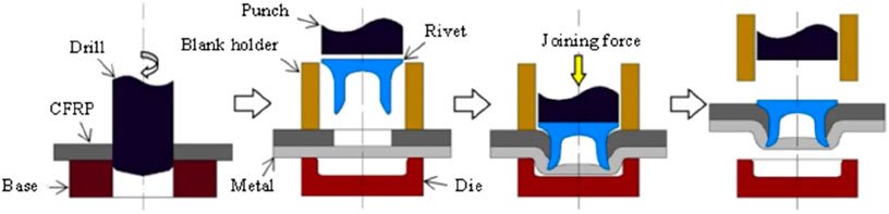 Figure 9. Flow chart of pre-holed self-piercing riveting process (Zhang et al., 2020).