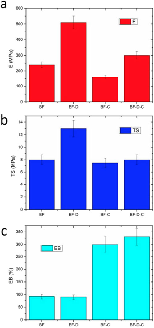Green polymer nanocomposites (GPNCs) represent a transformative class of materials in which nanoscale reinforcements are distributed within bio-based polymer or biodegradable matrices to significantly improve mechanical behavior (Velmurugan et al., 2023). Embedding of nanofillers such as carbon-based nanomaterials, nanoclays, or cellulose nanocrystals (CNCs), will enhance material’s load-bearing capacity through increasing interfacial surface area and mechanical interconnection (Rashid et al., 2024). Polymer chain mobility restriction, and stress transfer facilitation due to these nanofillers will result in enhancing tensile strength and stiffness (Chan et al., 2021). For instance, Improvement for more than 22.3% and 64.17%, was achieved in tensile strength and modulus respectively for 1 wt% CNC-reinforced PLA compared to neat PLA (Trivedi and Gupta, 2025).
