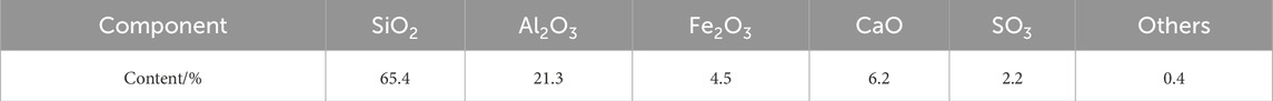 Drawing from this principle, ultrafine high-reactivity fly ash (UHFA) presents a promising alternative to conventional fly ash for use with CCS (Cai et al., 2024). Its smaller particle size, larger specific surface area, and higher content of reactive oxides promote rapid dissolution of amorphous silica and alumina, thereby accelerating the generation of calcium silicate hydrate (C-S-H) and calcium aluminate hydrate (C-A-H) gels (Zhang et al., 2021; Wang and Dong, 2023). These hydrates fill voids and enhance microstructural densification, improving both early- and long-term strength (Akmalaiuly et al., 2023). While the foundational work of Horpibulsuk, Phetchuay and Chinkulkijniwat (Horpibulsuk et al., 2012) confirmed the viability of the CCR-FA system, a systematic investigation focused on the enhanced performance offered by ultrafine high-reactivity fly ash has not been thoroughly conducted. Specifically, there is a need to optimize the mixture proportions and total dosage of the UHFA-CCS system for expansive soils and to quantify the benefits through a detailed analysis of mechanical performance, microstructural evolution, and economic efficiency.