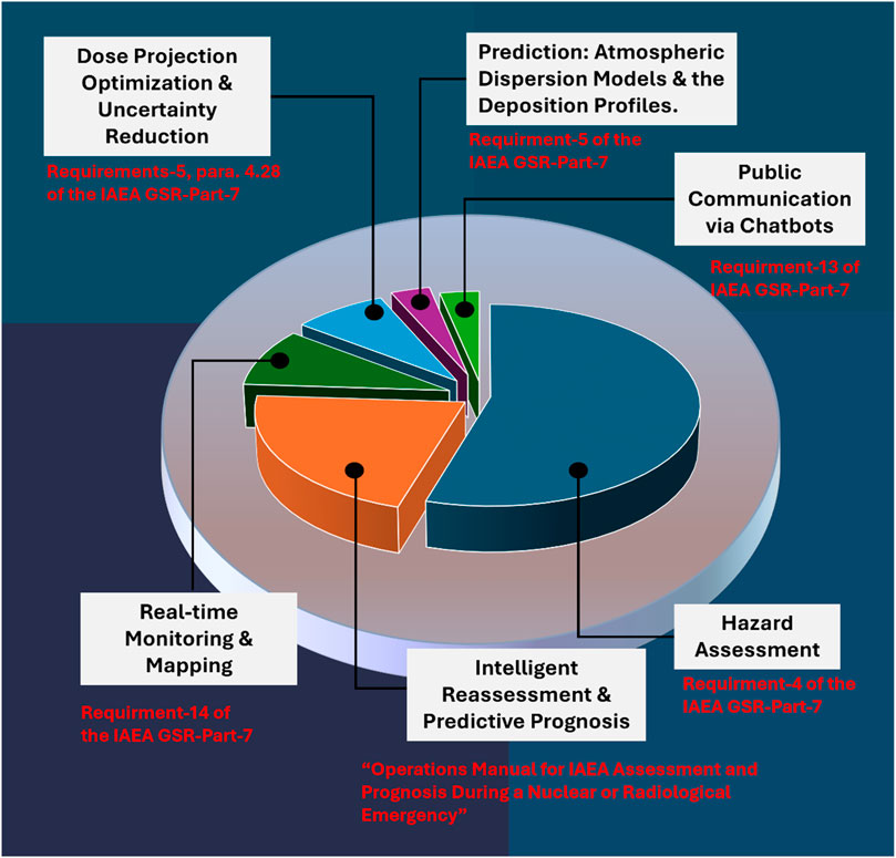 Artificial intelligence can also be employed to enhance communication to the public during emergencies by potential implementation of intelligent Chatbots. This feature helps in meeting Requirement 13 of the IAEA GSR-Part-7 document.