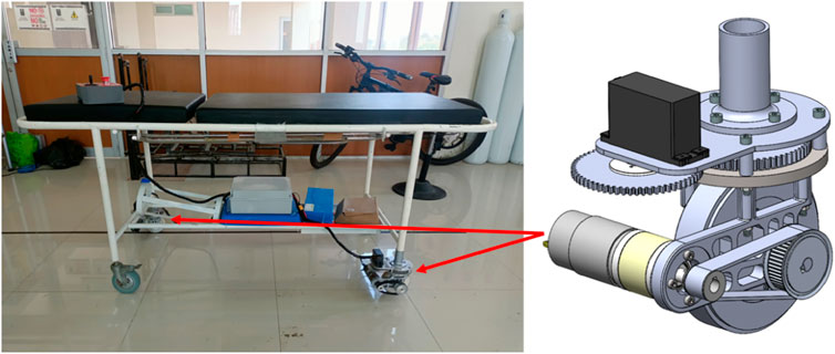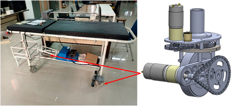 Hospital beds primarily serve as a place for patients to lie down. Over time, the need for mobility in hospital beds has become increasingly important, especially for patients requiring special care, laboratory tests, and other procedures. This mobility is essential for efficiently moving patients within the hospital. Traditionally, hospital beds are designed with four caster wheels, allowing them to be easily maneuvered by nurses or specialized staff. There are two main types of hospital beds: those used in patient rooms and stretcher beds specifically for patient transport. In general, pushing hospital beds requires considerable physical effort, often involving at least two people, while moving larger hospital beds can require up to four people (Guo and Yu, 2016). This task can become particularly challenging when there is a shortage of healthcare personnel, which can occur due to various urgent responsibilities, especially during emergencies or extraordinary situations such as the COVID-19 pandemic (Nurhasan and Hariyanto, 2021). During the pandemic, healthcare resources were heavily allocated to treating COVID-19 patients, highlighting the limitations in healthcare staffing. Healthcare workers, equipped with multiple layers of personal protective equipment (PPE), including hazmat suits and masks, often experienced oxygen deficits, leading to fatigue and health risks (Haward et al., 2023).