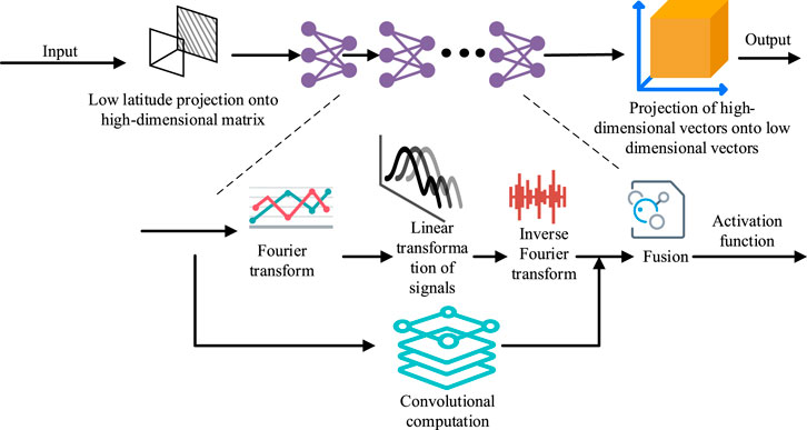 According to Figure 2, the physical spatial data is Fourier layered into high-latitude space and transformed into the Fourier domain through Fourier transformation. Then, the low-frequency signal is retained through linear transformation, and the data is adjusted to physical space through inverse transformation to preserve more accurate load characteristic information (Basiri et al., 2023). The iterative process of FNO network is shown in Equation (9).