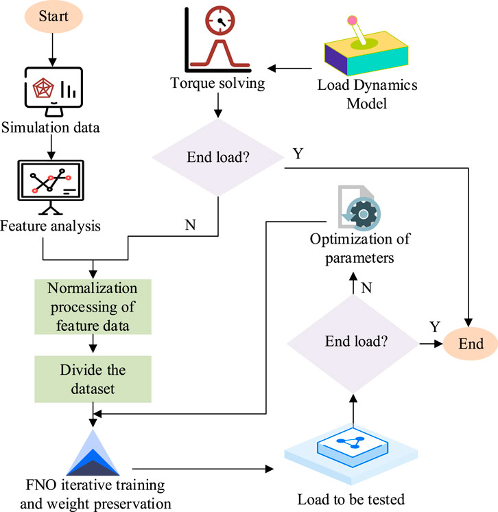 In the previous subsection, a fundamental analysis of robot load is completed based on a dynamic model. Although the load status of the robot is identified from the extracted raw data, the accuracy is low and cannot meet high-precision load detection. Therefore, the study introduces FNO networks to process raw data. The FNO network can perform Fourier transform on the extracted spatial physical information data, and use kernel integration operators to operate on the transformed data to obtain low-frequency feature data in the original data. Accurate load information can be obtained through partial differential solution. The FNO network framework is shown in Figure 2.