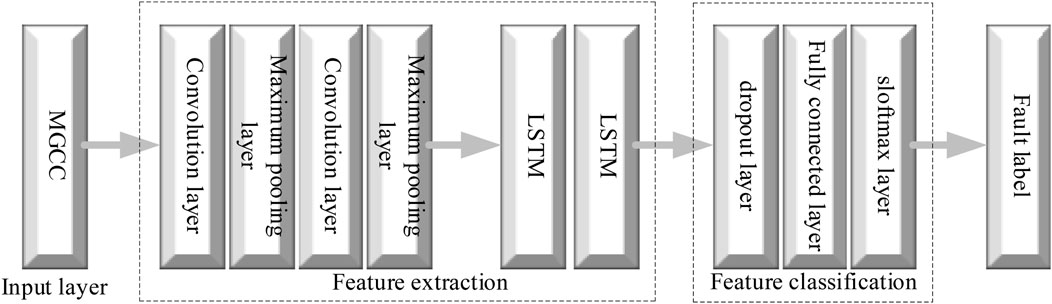 Methods: Aiming at the problem of insufficient accuracy of traditional voiceprint diagnosis techniques under complex working conditions, this paper proposes a transformer voiceprint fault diagnosis method that integrates CNN and LSTM. Through the series fusion of MFCC and GFCC and Fisher criterion screening, the MGCC characteristic parameters that take into account both accuracy and noise resistance are constructed for model input. Empirical tests were carried out on the voiceprint signals of three types of working conditions: normal transformer, loose winding and loose core.