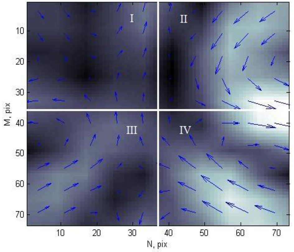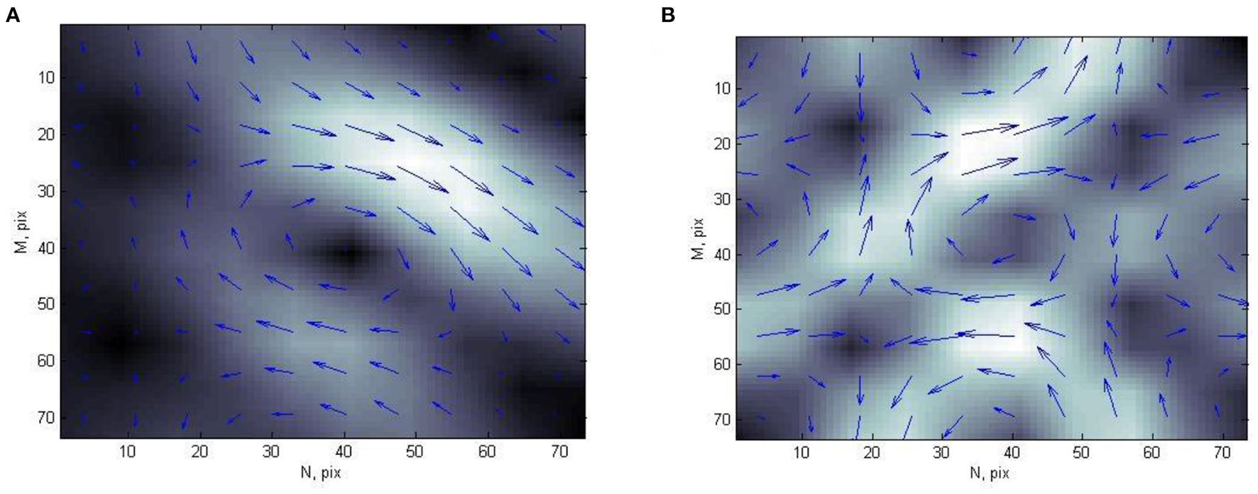 Each CDDM in this study is formed by transformation of current density vectors, obtained from MCG. Each CDDM is a grayscale discrete image with dimensions of M × N pixels, where white color corresponds to the highest brightness, and the black color corresponds to the lowest brightness (Figure 1). Thus, the brightness of an image corresponds to the current density value in a particular point.