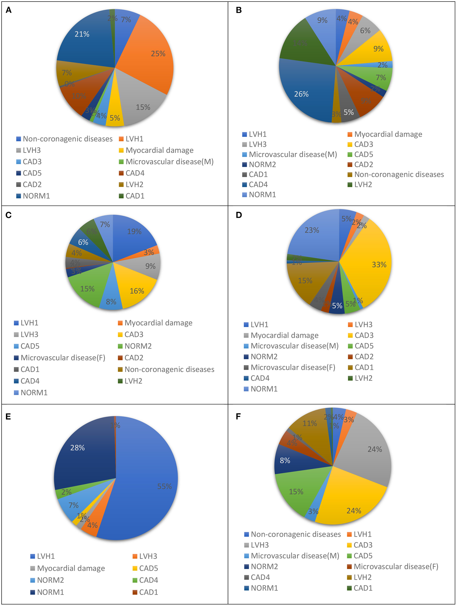 | CAD3 | Non-coronarogenic diseases, CAD2, Microvascular disease (M), Microvascular disease (F) |